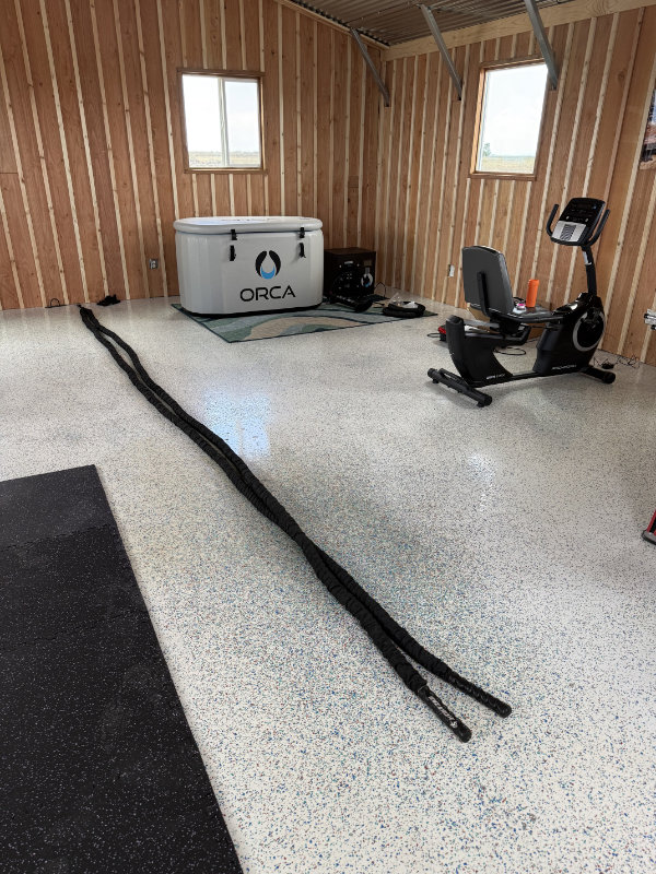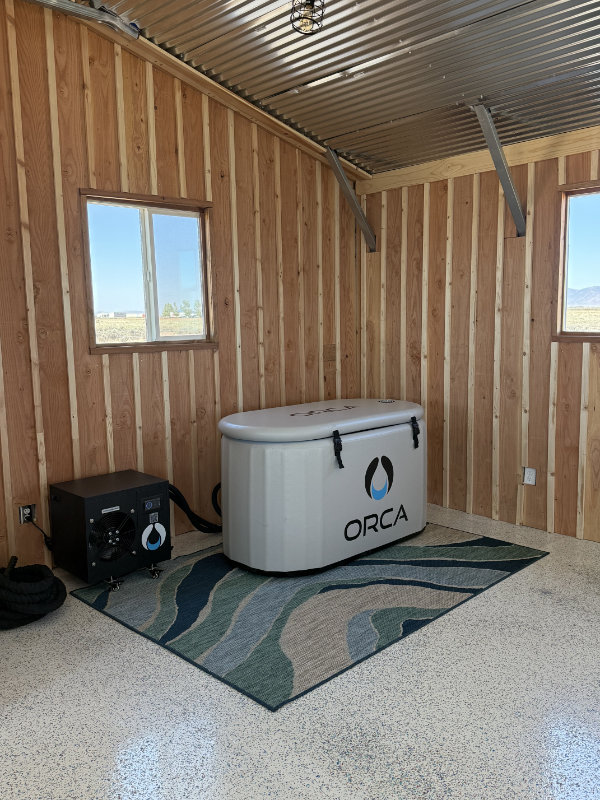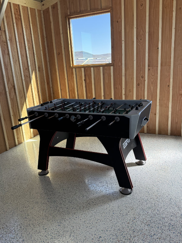 Right across from the desert beach house you can get a great biohacking work out. Get your blood pumping with an exercise bike, battle ropes and jump ropes. Then relax with some light therapy, a sunlight spa and wake up with a nice cold plunge, then take it easy with some foosball for a bit of fun.