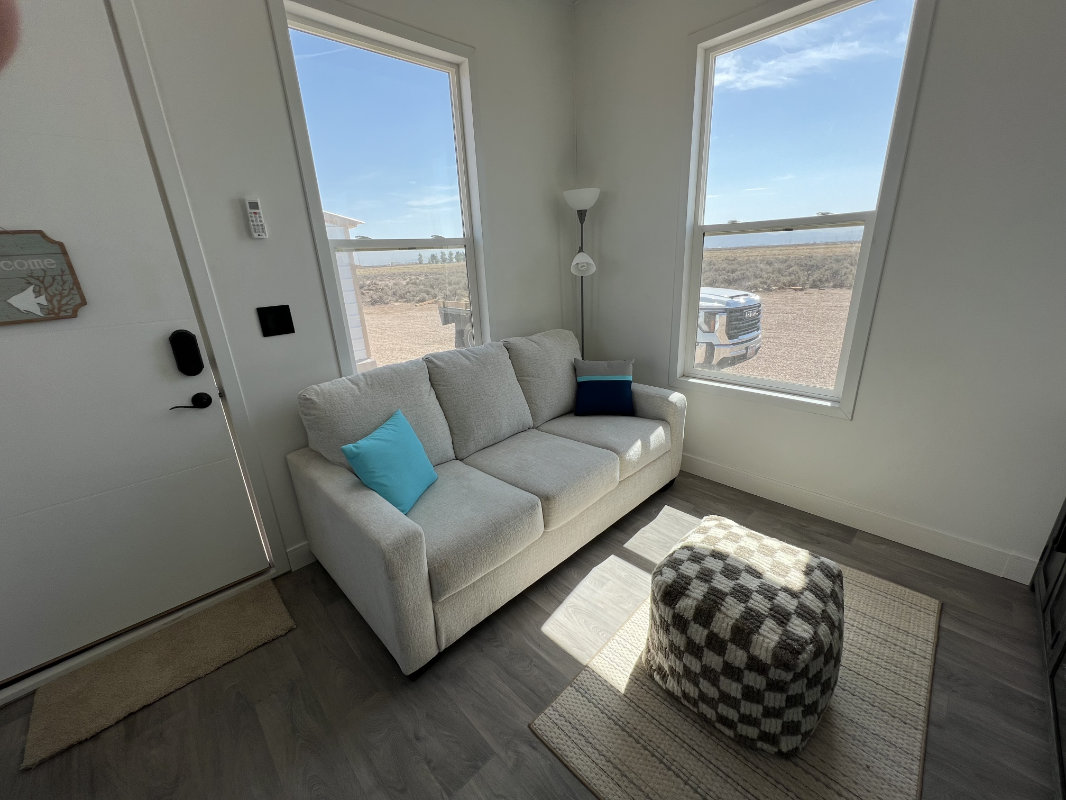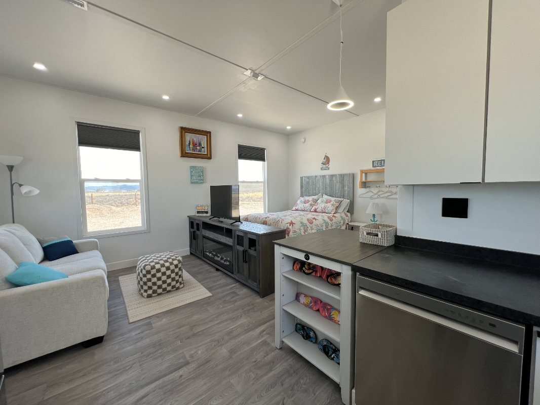 Boxabl Tiny home that feels large. With the open floor plan and 11 foot high ceiling. Large windows and full sized kitchen and appliances. You have access to the full 5 acre lot, with a walking trail a quarter mile long. Stay in the first Boxabl Casita in Utah.