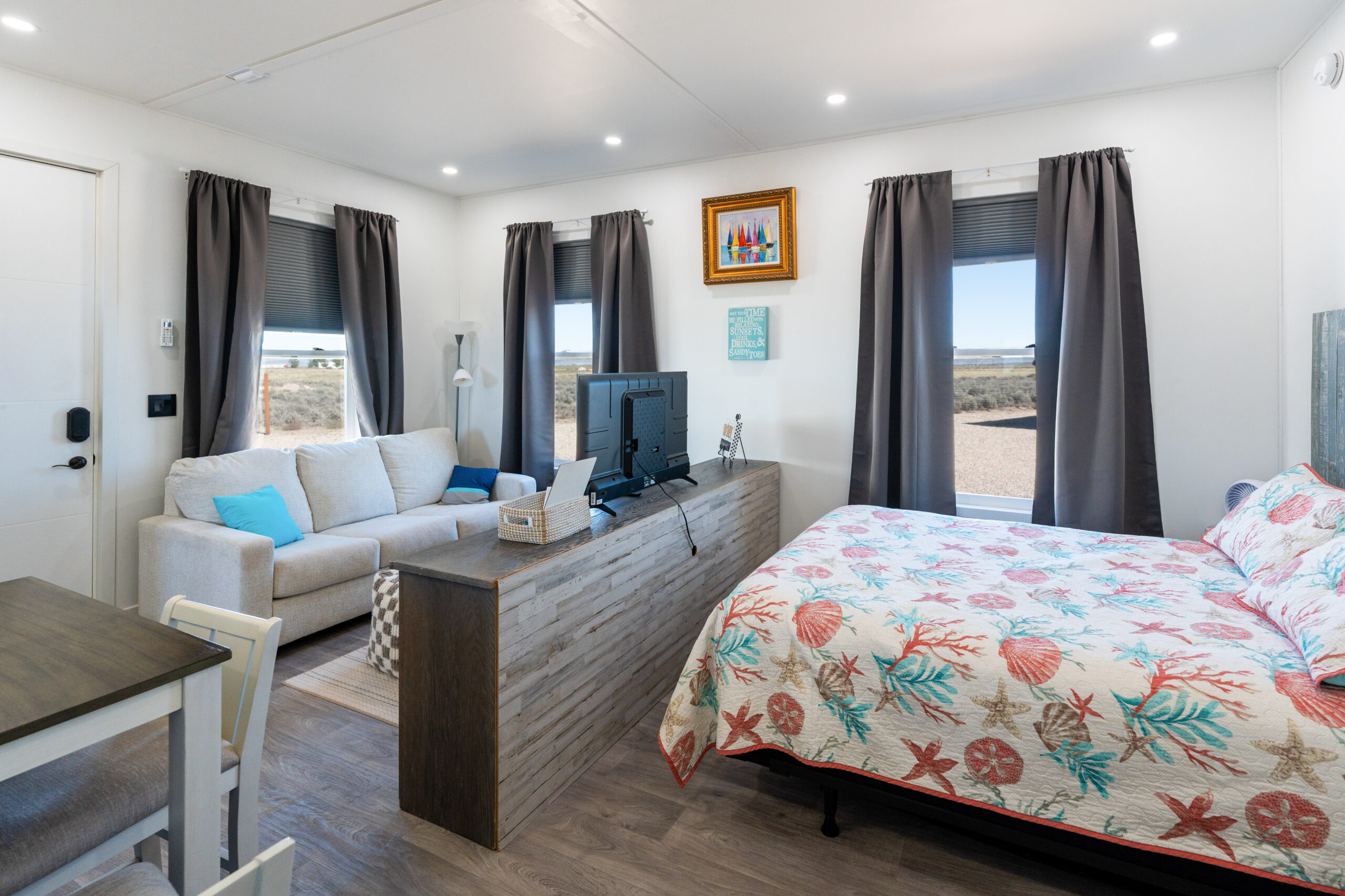Stayed here because we were visiting Outpost X and didn’t want to spend hundreds of dollars for one night. The place is beautiful, in great condition, very clean, and is surprisingly spacious for a tiny home. Kevan was very responsive and let us arrive early and check out late which was super helpful. I would definitely stay here again.